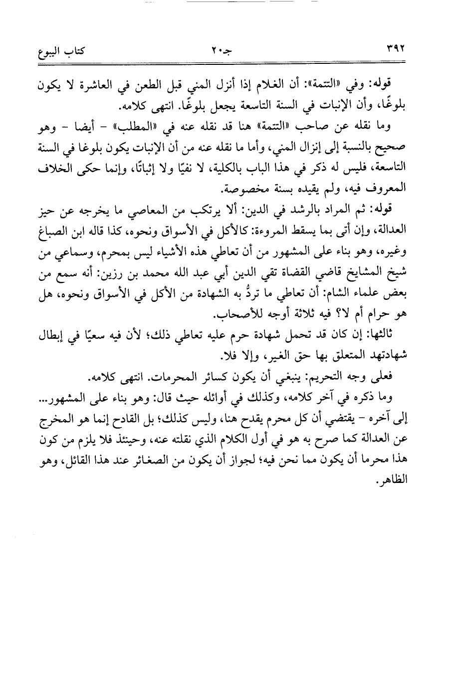 قوله: ثم المراد بالرشد في الدين: ألا يرتكب من المعاصي ما يخرجه عن حيز العدالة، وإن أتى بما يسقط المروءة: كالأكل في الأسواق ونحوه، كذا قاله ابن الصباغ وغيره، وهو بناء على المشهور من أن تعاطي هذه الأشياء ليس بمحرم، وسماعي من شيخ المشايخ قاضي القضاة تقي الدين أبي عبد الله محمد بن رزين: أنه سمع من بعض علماء الشام: أن تعاطي ما ترد به الشهادة من الأكل في الأسواق ونحوه، هل هو حرام أم لا؟ فيه ثلاث أوجه للأصحاب.