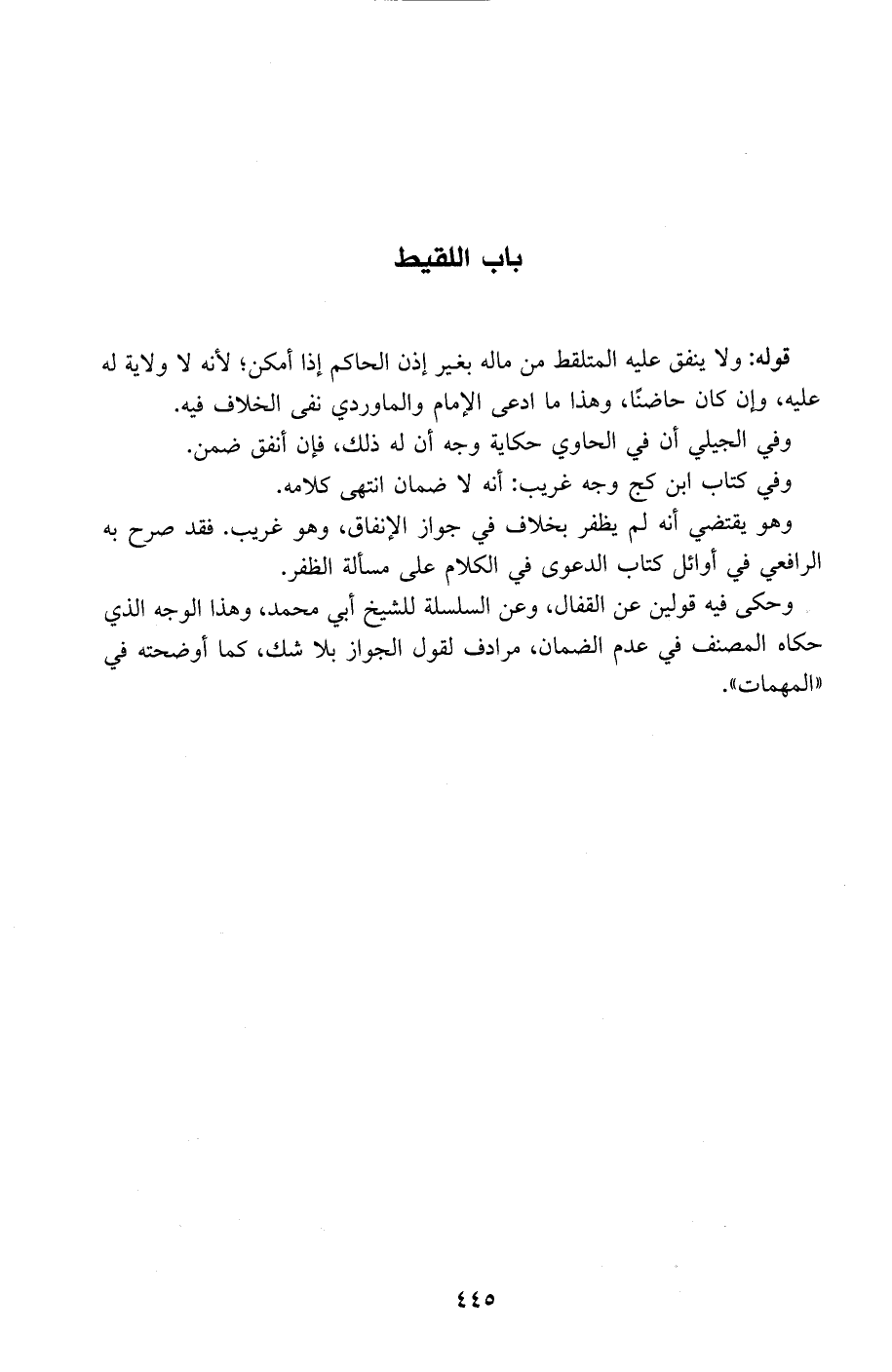 قوله: ولا ينفق عليه المتلقط من ماله بغير إذن الحاكم إذا أمكن، لأنه لا ولاية له عليه، وإن كان حاضنًا، وهذا ما ادعى الإمام والماوردي نفى الخلاف فيه.