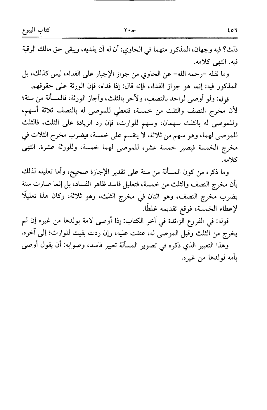 وما نقله- رحمه الله- عن الحاوي من جواز الإجبار على الفداء، ليس كذلك، بل المذكور فيه: إنما هو جواز الفداء، فإنه قال: إذا فداه، فإن الورثة على حقوقهم.