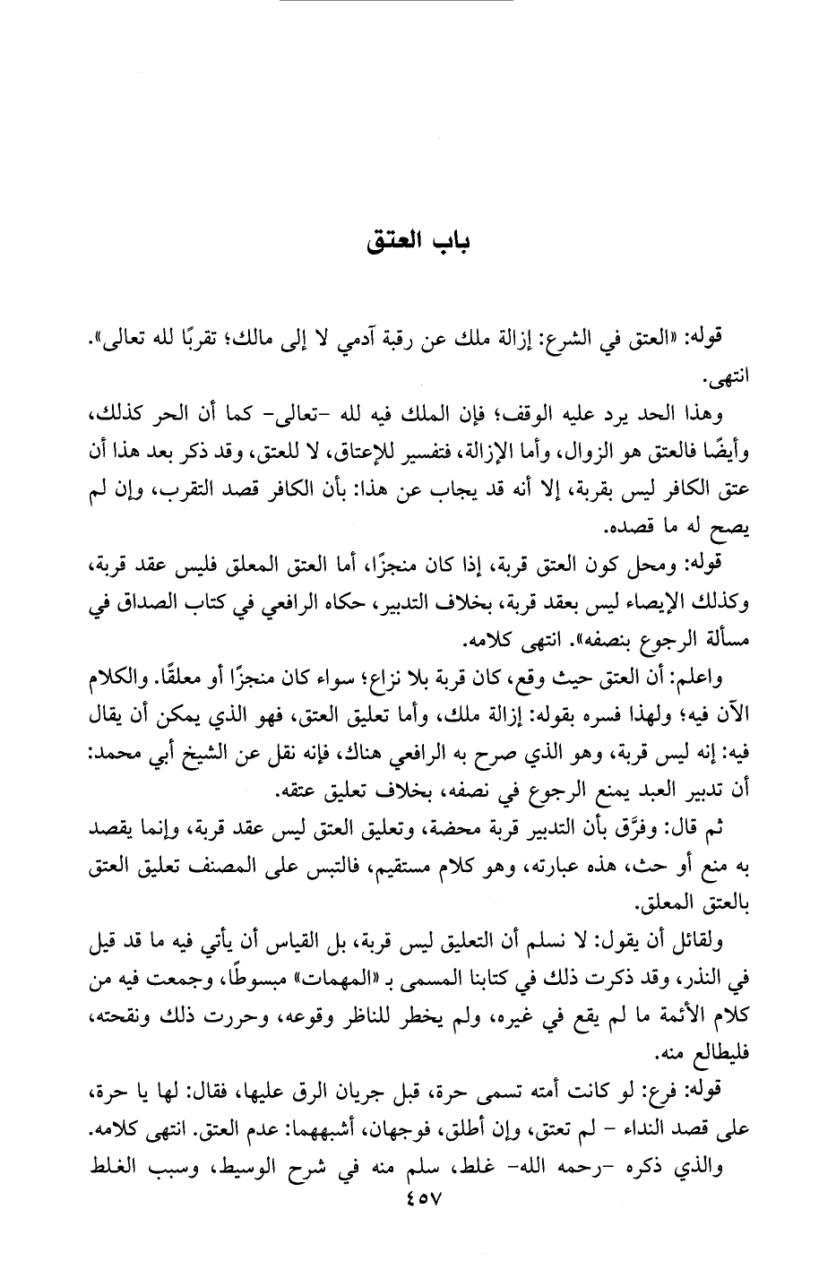 قوله: ((العتق في الشرع: إزالة ملك عن رقبة آدمي لا إلى مالك، تقربًا لله تعالى)). انتهى.