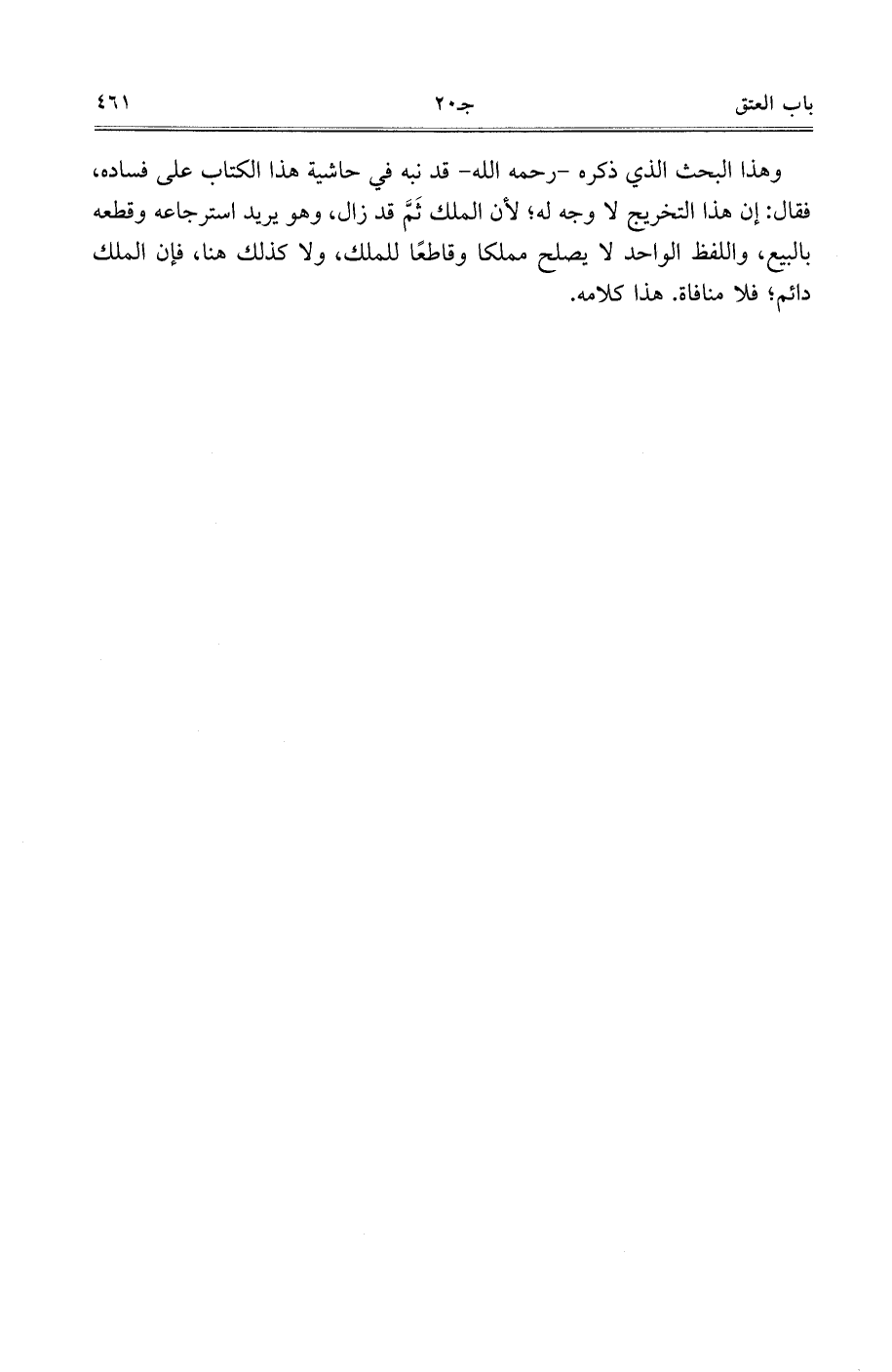 وهذا البحث الذي ذكره- رحمه الله- قد نبه في حاشية هذا الكتاب على فساده، فقال: إن هذا التخريج لا وجه له، لأن الملك ثم قد زال، وهو يريد استرجاعه وقطعه بالبيع، واللفظ الواحد لا يصلح مملكًا وقاطعًا للملك، ولا كذلك هنا، فإن الملك دائم، فلا منافاة. هذا كلامه.