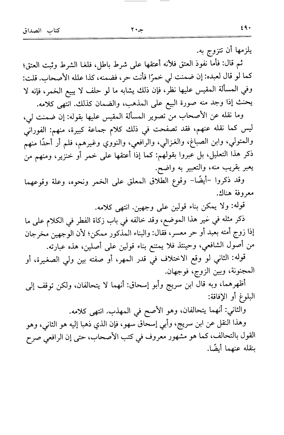 ثم قال: فأما نفوذ العتق فلأنه أعتقها على شرط باطل، فلغا الشرط وثبت العتق، كما لو قال لعبده: إن ضمنت لي خمرًا فأنت حر، فضمنه، كذا علله الأصحاب. قلت: وفي المسألة المقيس عليها نظر، فإن ذلك يشابه ما لو حلف لا يبيع الخمر، فإنه لا يحنث إذا وجد منه صورة البيع على المذهب، والضمان كذلك. انتهى كلامه.