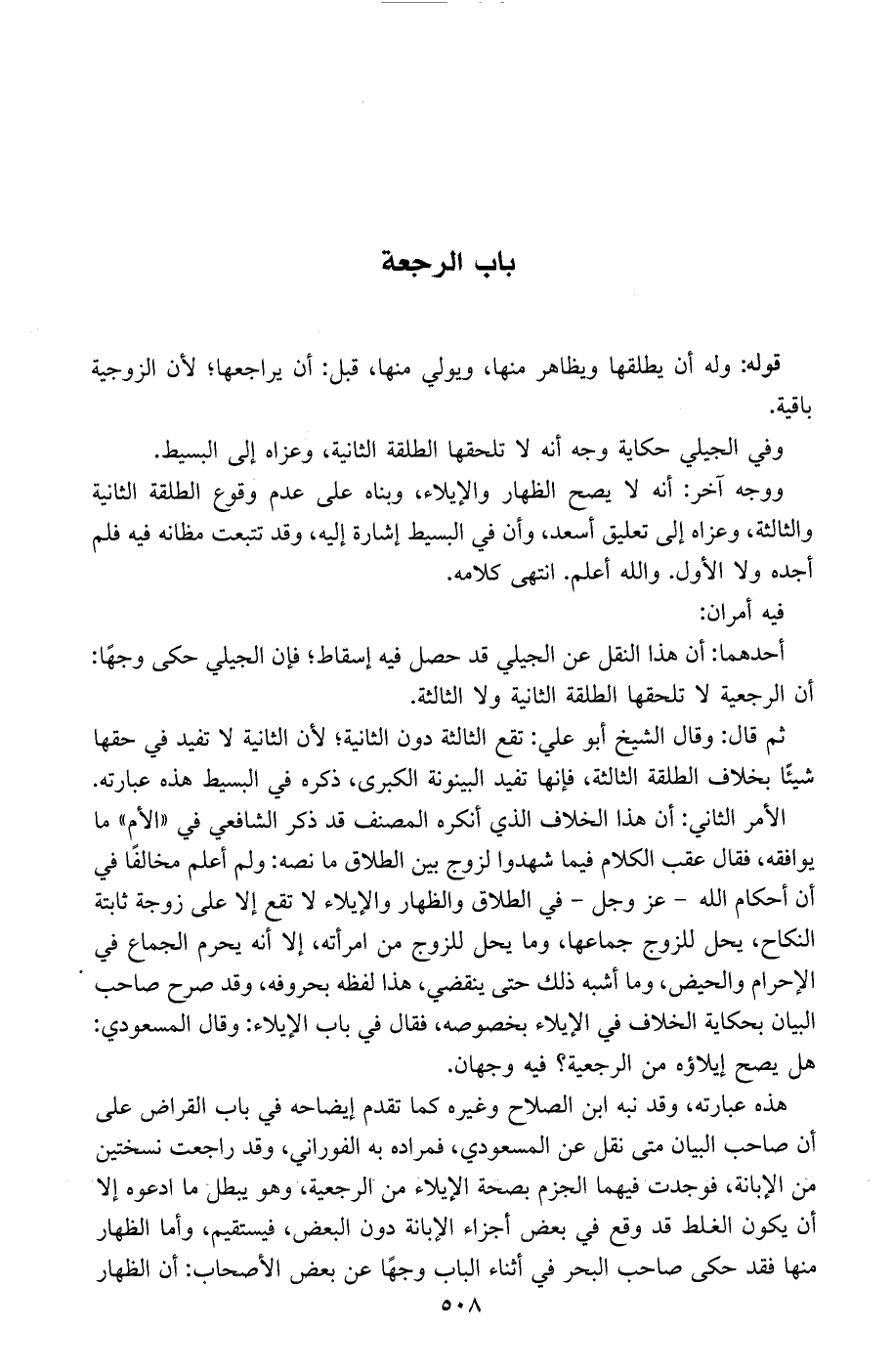 هذه عبارته، وقد نبه ابن الصلاح وغيره كما تقدم إيضاحه في باب القراض على أن صاحب البيان متى نقل عن المسعودي، فمراده به الفوراني، وقد راجعت نسختين من الإبانة، فوجدت فيهما الجزم بصحة الإيلاء من الرجعية، وهو يبطل ما ادعوه إلا أن يكون الغلط قد وقع في بعض أجزائه الإبانة دون البعض، فيستقيم، وأما الظهار منها فقد حكى صاحب البحر في أثناء الباب وجهًا عن بعض الأصحاب: أن الظهار