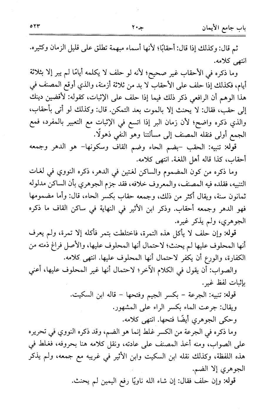 وما ذكره في الجرعة من الكسر غلط إنما هو الضم، وقد ذكره النووي في تحريره على الصواب، ومنه أخذ المصنف على عادته، ونقل كلامه هنا بحروفه، فغلط في هذه اللفظة، وكذلك نقله ابن السكيت وابن الأثير في غريبه مع جمعه، ولم يذكر الجوهري إلا الضم.