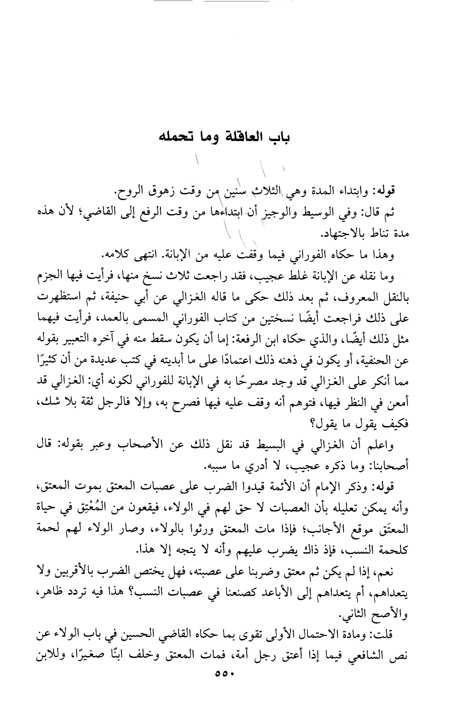 وما نقله عن الإبانة غلط عجيب، فقد راجعت ثلاث نسخ منها، فرأيت فيها الجزم النقل المعروف، ثم بعد ذلك حكى ما قاله الغزالي عن أبي حنيفة، ثم استظهرت على ذلك فراجعت أيضًا نسختين من كتاب الفوراني المسمى بالعمد، فرأيت فيهما مثل ذلك أيضًا، والذي حكاه ابن الرفعة: إما أن يكون سقط منه في آخره التعبير بقوله عن الحنفية، أو يكون في ذهنه ذلك اعتمادًا على ما أبديته في كتب عديدة من أن كثيرًا مما أنكر على الغزالي قد وجد مصرحًا به في الإبانة للفوراني لكونه أي: الغزالي قد أمعن في النظر فيها، فتوهم أنه وقف عليه فيها فصرح به، وإلا فالرجل ثقة بلا شك، فيكف يقول ما يقول؟