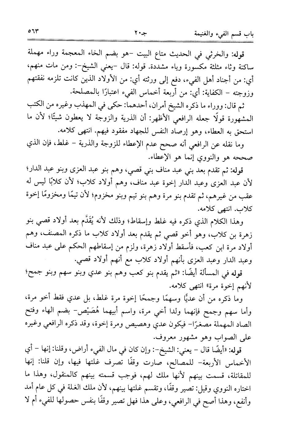 قوله: ثم تقدم بعد بني عبد مناف بني قصي، وهم بنو عبد العزى وبنو عبد الدار، لأن عبد العزى وعبد الدار إخوة عبد مناف، وهم أولاد كلاب، لأن كلابًا ليس له عقب من غيرهم، ثم تقدم بنو مرة وهم بنو تيم وبنو مخزوم، لأن تيمًا ومخزومًا إخوة كلاب. انتهى كلامه.