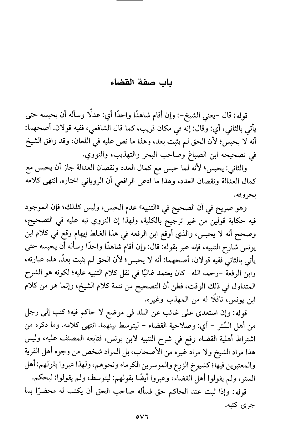 وهو صريح في أن الصحيح في ((التنبيه)) عدم الحبس، وليس كذلك، فإن الموجود فيه حكاية قولين من غير ترجيح بالكلية، ولهذا إن النووي نبه عليه في التصحيح، وصحح أنه لا يحبس، والذي أوقع ابن الرفعة في هذا الغلط إيهام وقع في كلام ابن يونس شارح التنبيه، فإنه عبر بقوله: قال: وإن أقام شاهدًا واحدًا وسأله أن يحبسه حتى يأتي بالثاني ففيه قولان، أصحهما: أنه لا يحبس، لأن الحق لم يثبت بعد. هذه عبارته، وابن الرفعة- رحمه الله- كان يعتمد غالبًا في نقل كلام التنبيه عليه، لكونه هو الشرح المتداول في ذلك الوقت، فظن أن التصحيح من تتمة كلام الشيخ، وإنما هو من كلام ابن يونس، ناقلًا له من المهذب وغيره.