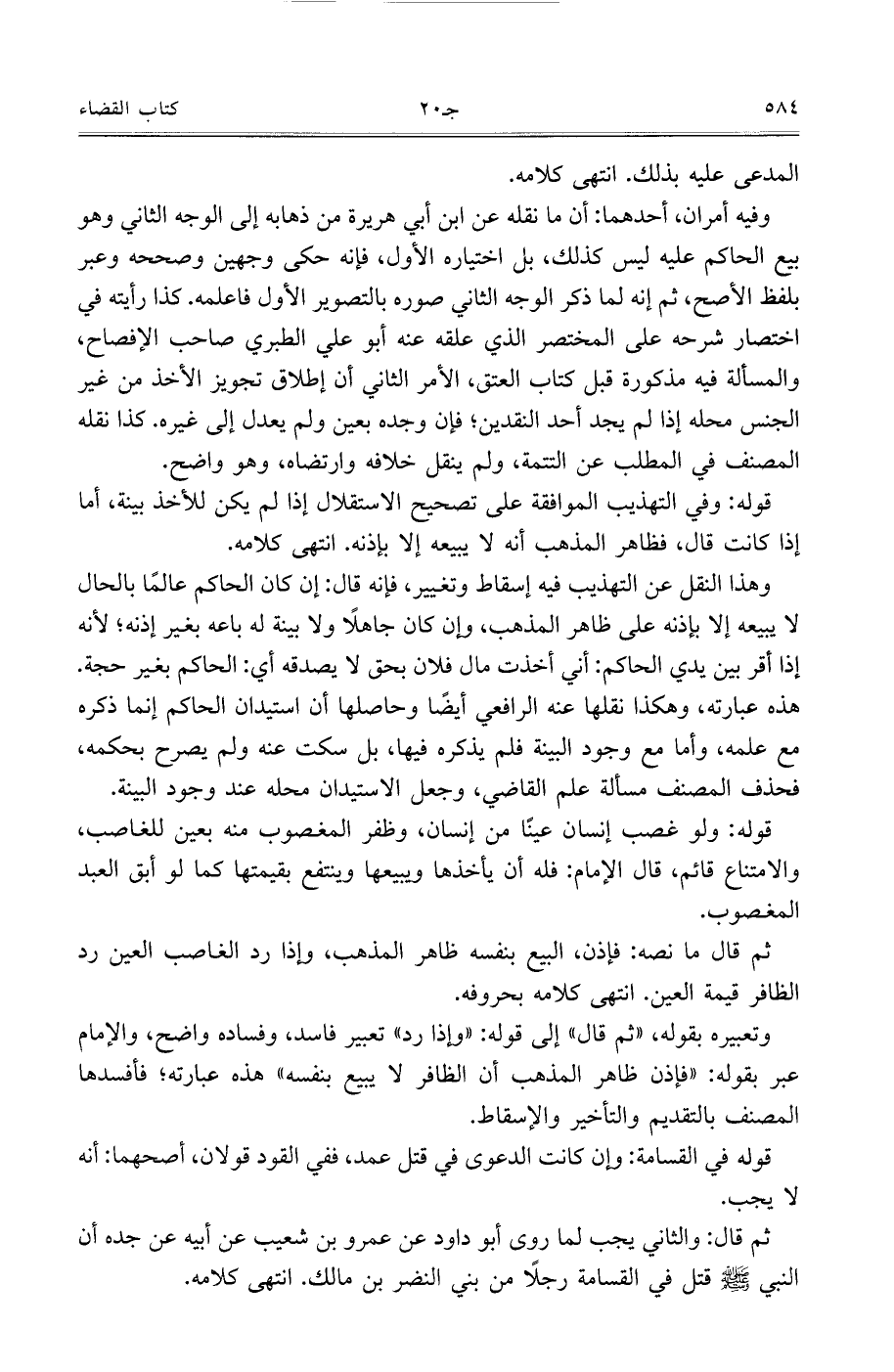 وتعبيره بقوله، ((ثم قال)) إلى قوله: ((وإذا رد)) تعبير فاسد، وفساده واضح، والإمام عبر بقوله: ((فإذن ظاهر المذهب أن الظافر لا يبيع بنفسه)) هذه عبارته، فأفسدها المصنف بالتقديم والتأخير والإسقاط.