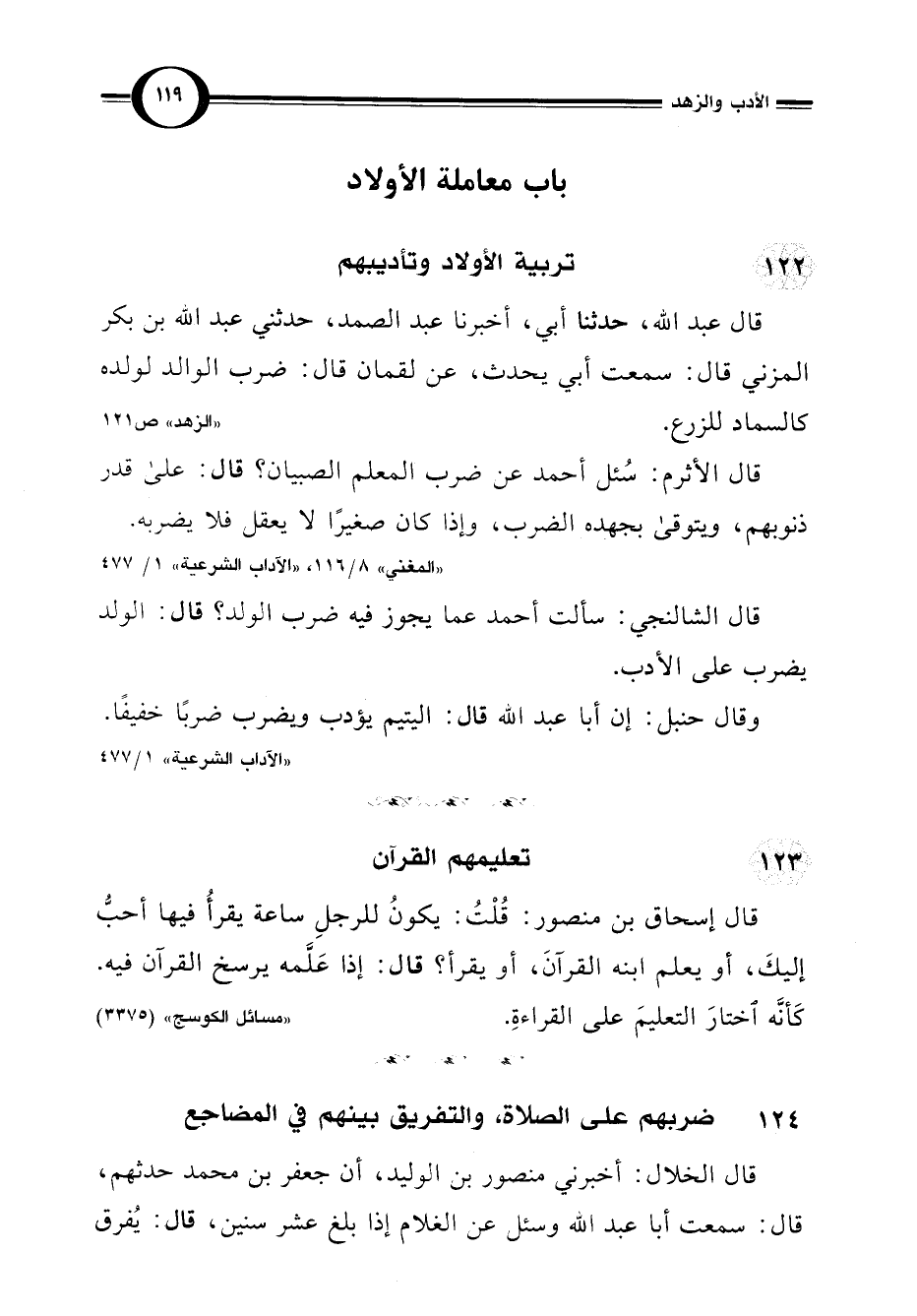 124 - ضربهم على الصلاة، والتفريق بينهم في المضاجع