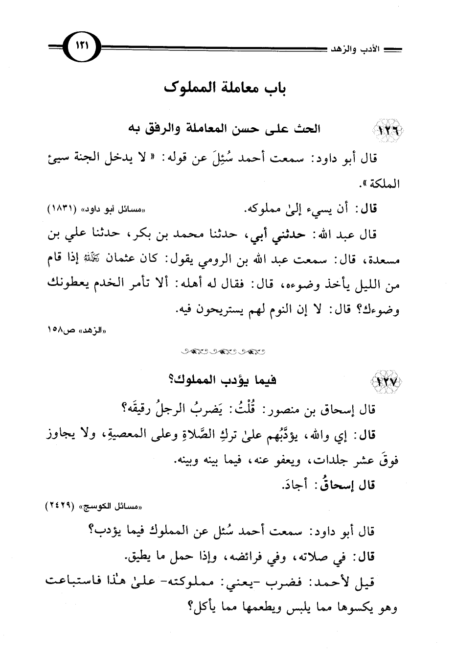 قال إسحاق بن منصور: قُلْتُ: يَضربُ الرجلُ رقيقَه؟