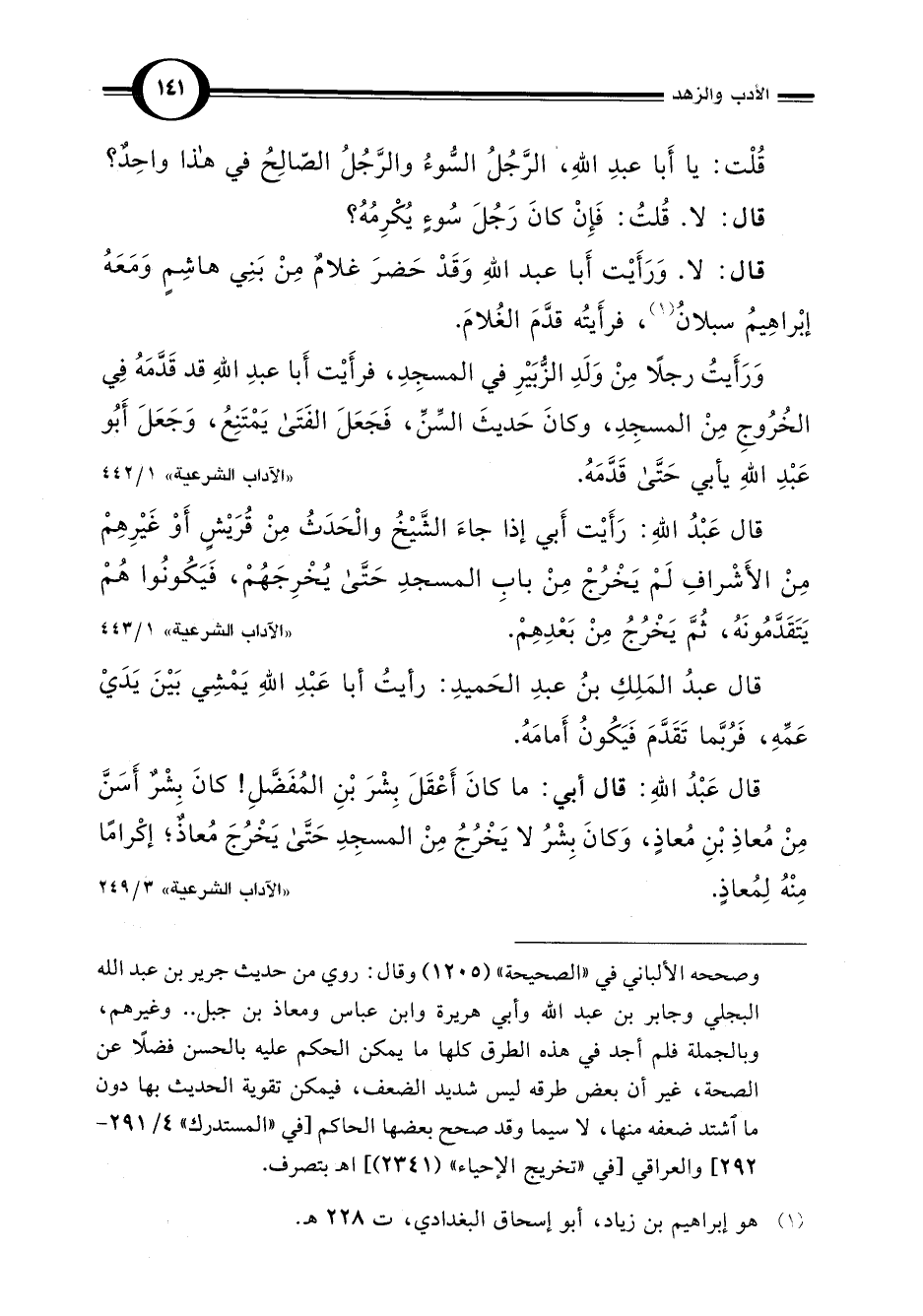 (¬1) هو إبراهيم بن زياد، أبو إسحاق البغدادي، ت 228 هـ.