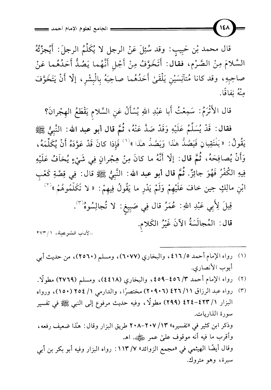 "الآداب الشرعية" 1/ 273
