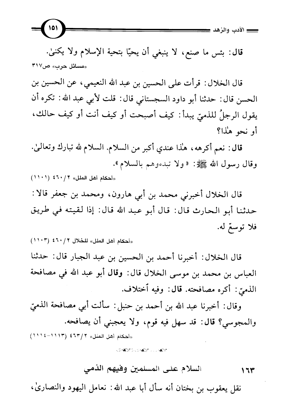 "أحكام أهل الملل" للخلال 2/ 460 (1103)