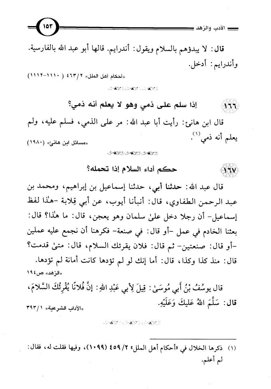 قال ابن هانئ: رأيت أبا عبد اللَّه: مر على الذمي، فسلم عليه، ولم يعلم أنه ذمي (¬1).