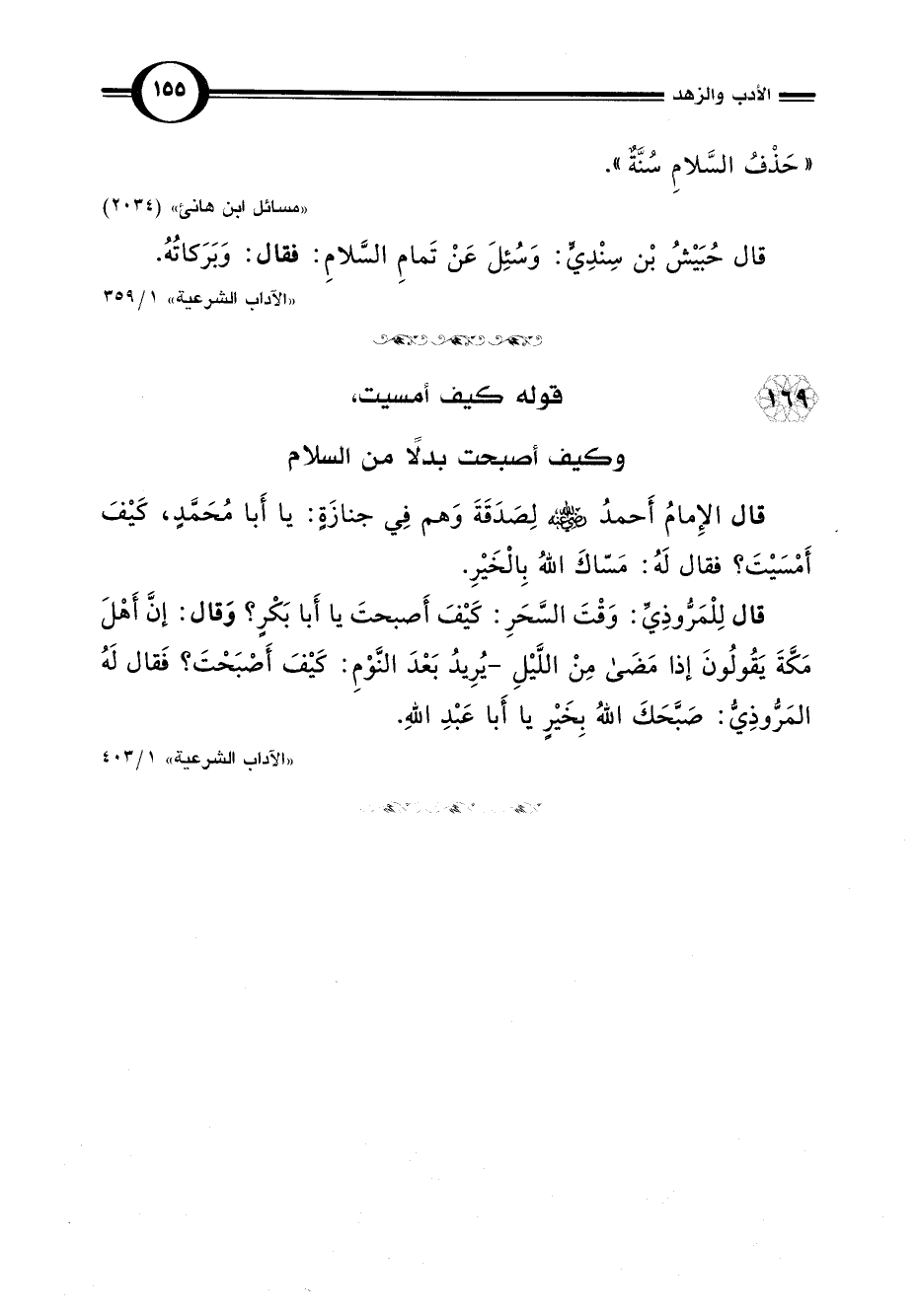 169 - قوله كيف أمسيت، وكيف أصبحت بدلًا من السلام