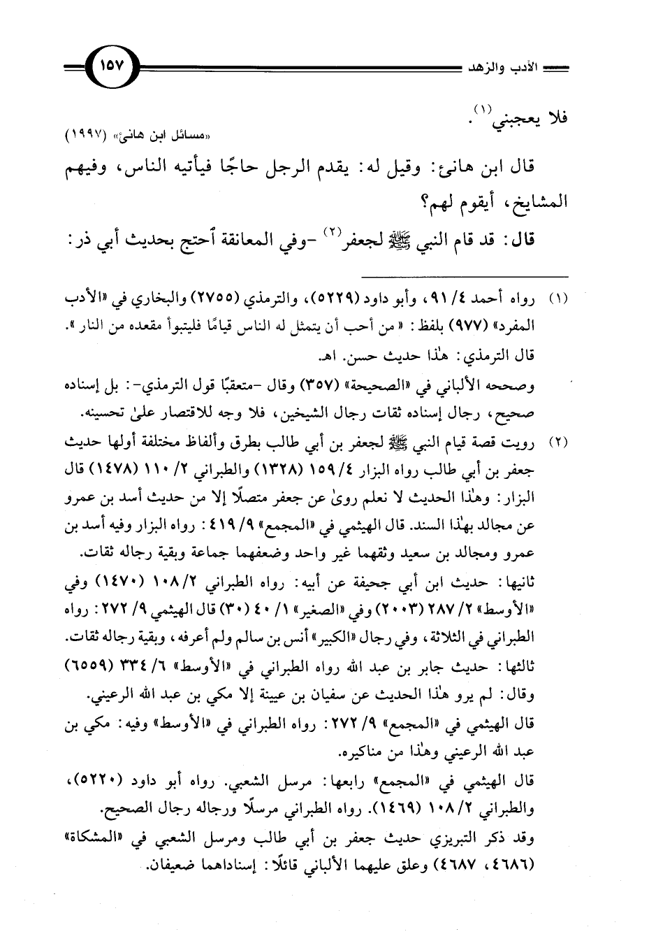 قال ابن هانئ: وقيل له: يقدم الرجل حاجًّا فيأتيه الناس، وفيهم المشايخ، أيقوم لهم؟