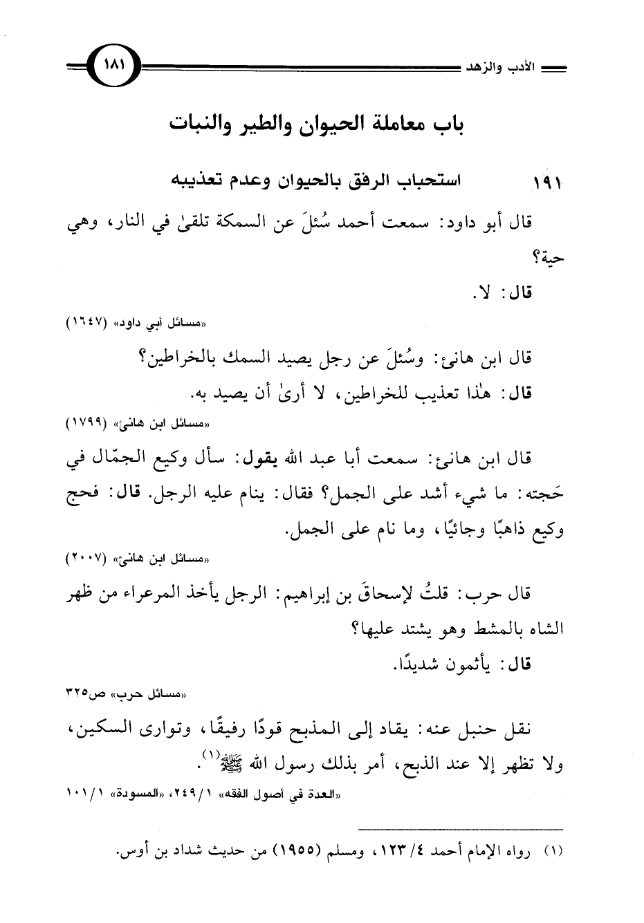 191 - استحباب الرفق بالحيوان وعدم تعذيبه