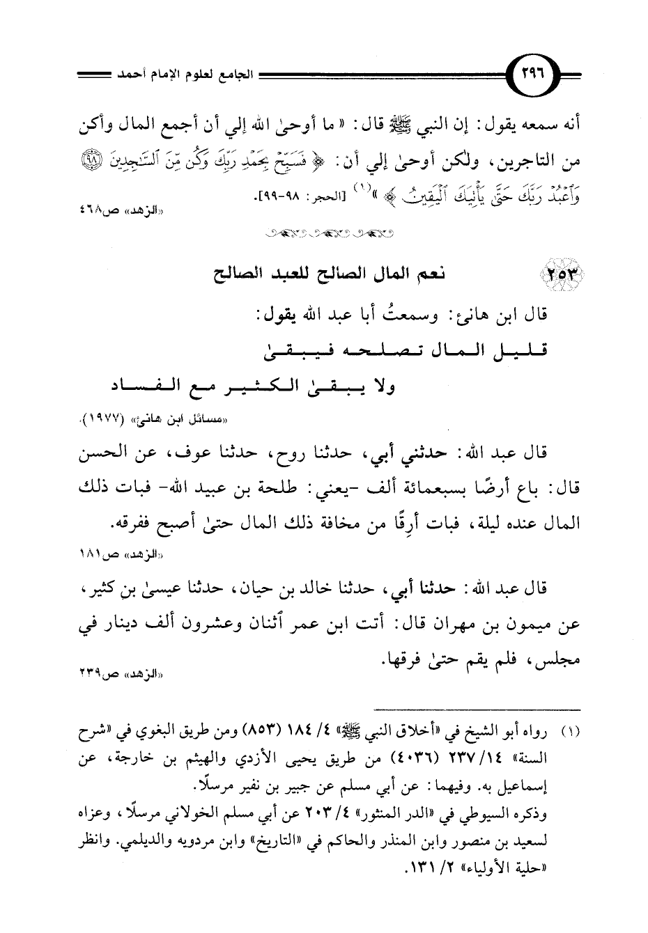 قال ابن هانئ: وسمعتُ أبا عبد اللَّه يقول: