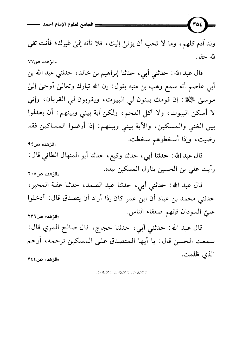 قال عبد اللَّه: حدثني أبي، حدثنا حجاج، قال صالح المري قال: سمعت الحسن قال: يَا أيها المتصدق على المسكين ترحمه، ارحم الذي ظلمت.