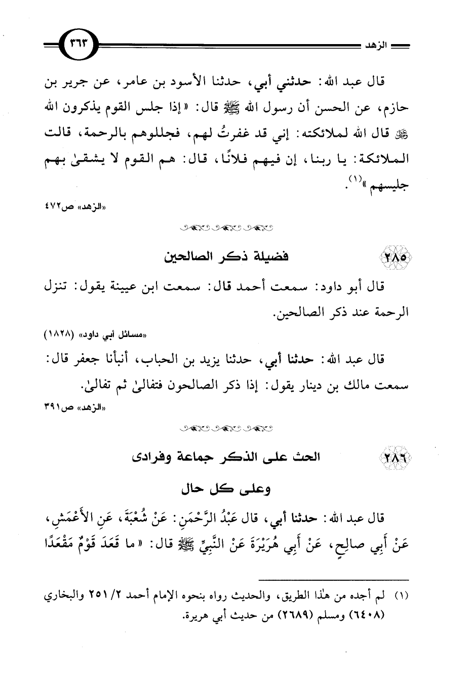 قال أبو داود: سمعت أحمد قال: سمعت ابن عيينة يقول: تنزل الرحمة عند ذكر الصالحين.