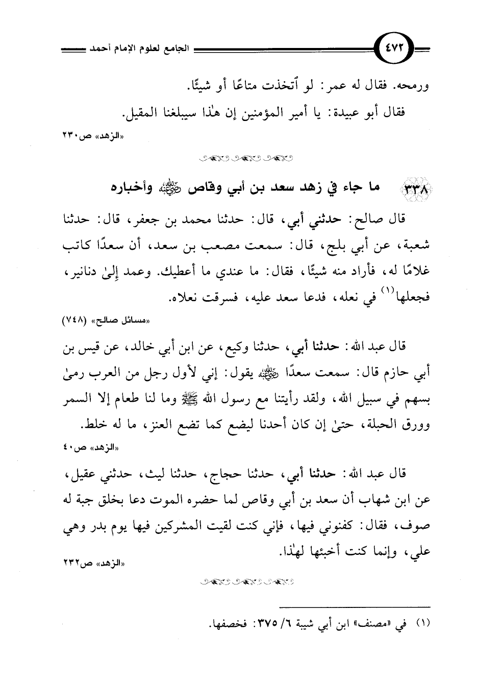 338 - ما جاء في زهد سعد بن أبي وقاص -رضي اللَّه عنه- وأخباره