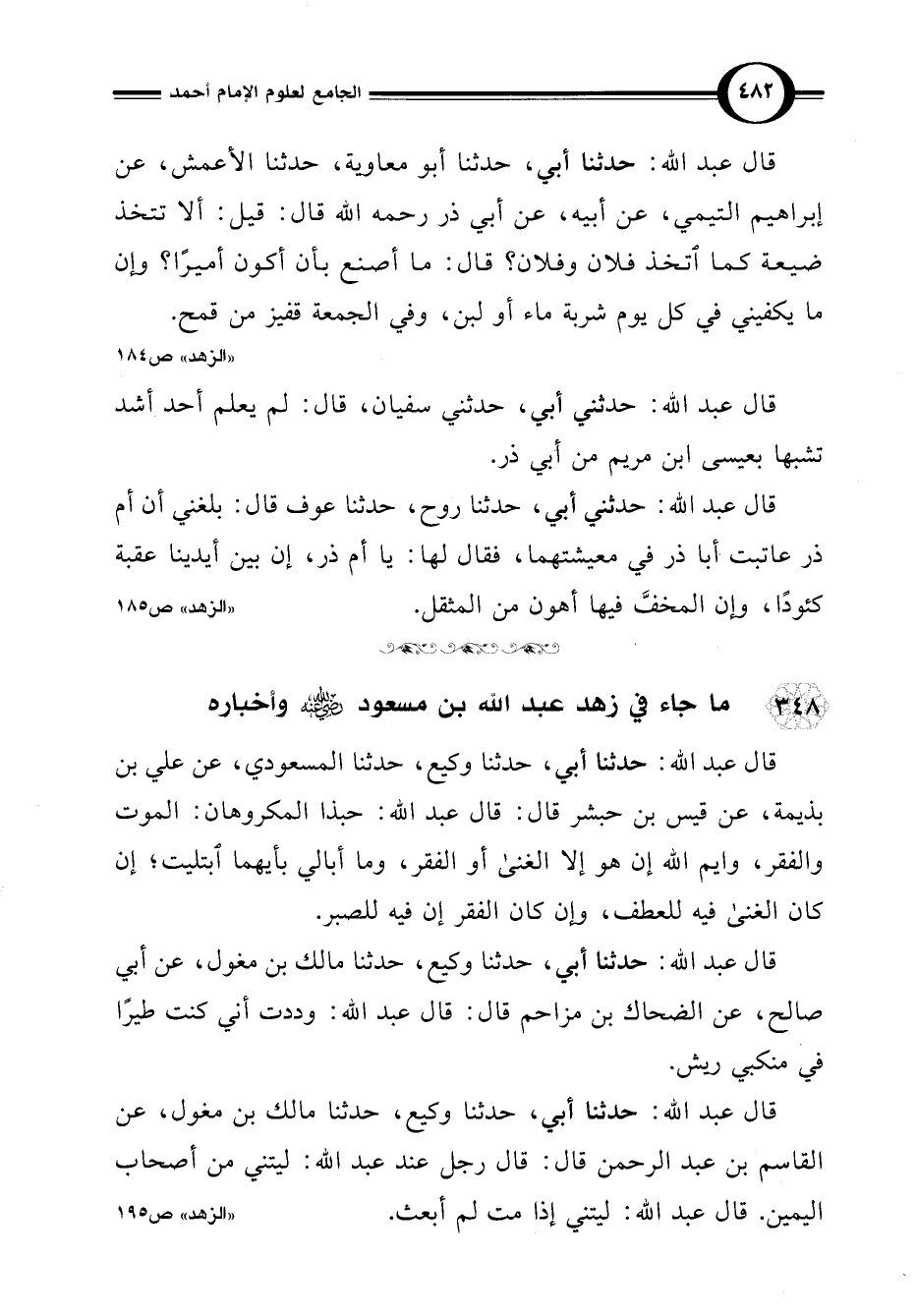 348 - ما جاء في زهد عبد اللَّه بن مسعود -رضي اللَّه عنه- وأخباره