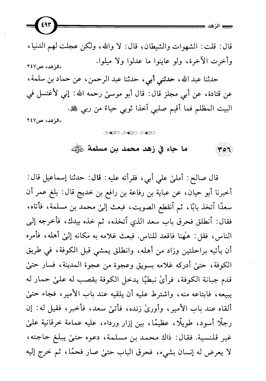 356 - ما جاء في زهد محمد بن مسلمة -رضي اللَّه عنه-