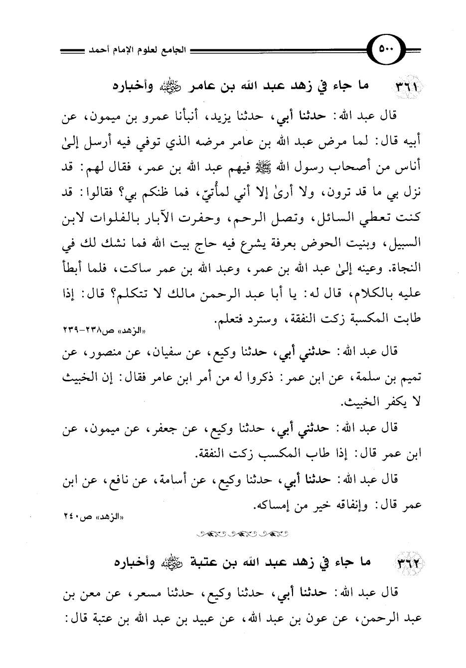 قال عبد اللَّه: حدثنا أبي، حدثنا وكيع، حدثنا مسعر، عن معن بن عبد الرحمن، عن عون بن عبد اللَّه، عن عبيد بن عبد اللَّه بن عتبة قال: