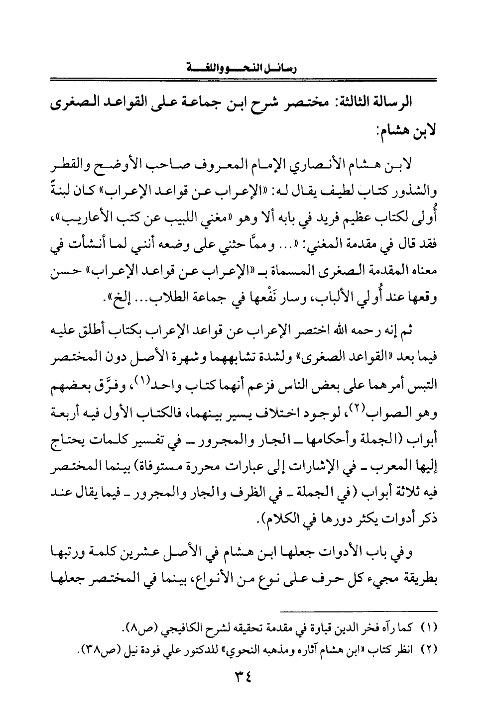 (¬٢) انظر كتاب "ابن هشام آثاره ومذهبه النحوي" للدكتور علي فودة نيل (ص ٣٨).