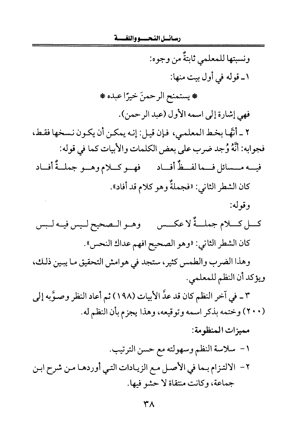 وهذا الضرب والطمس كثير، ستجد في هوامش التحقيق ما يبين ذلك، ويؤكد أن النظم للمعلمي.