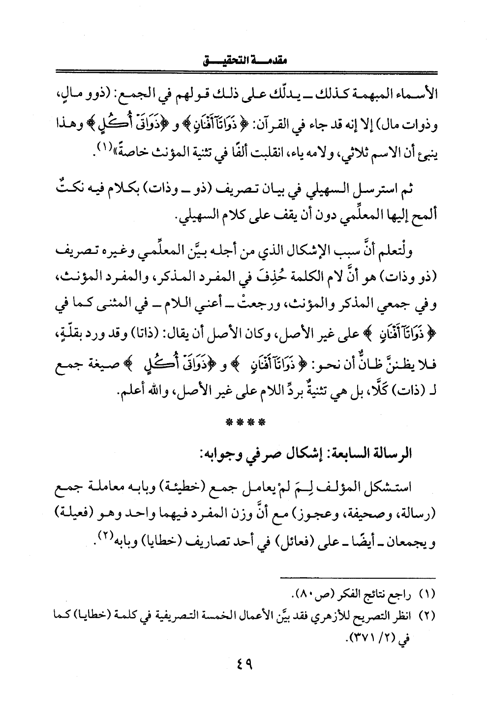 الرسالة السابعة: إشكال صرفي وجوابه: