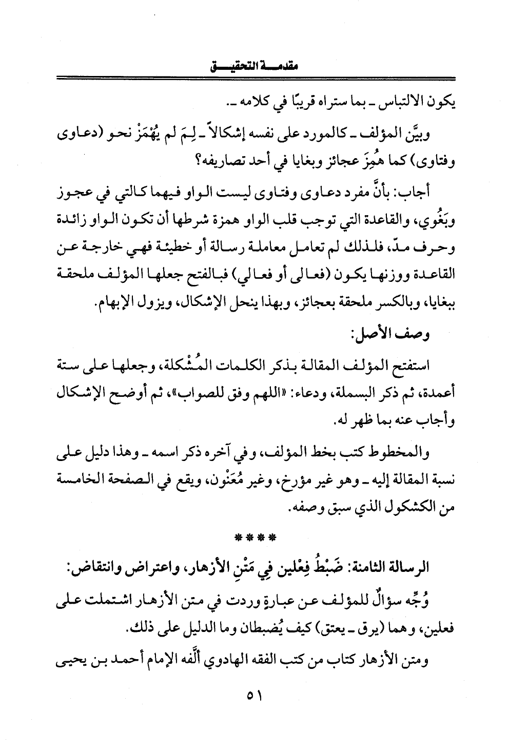 الرسالة الثامنة: ضَبْطُ فِعْلين فِي مَتْنِ الأزهار، واعتراض وانتقاض: