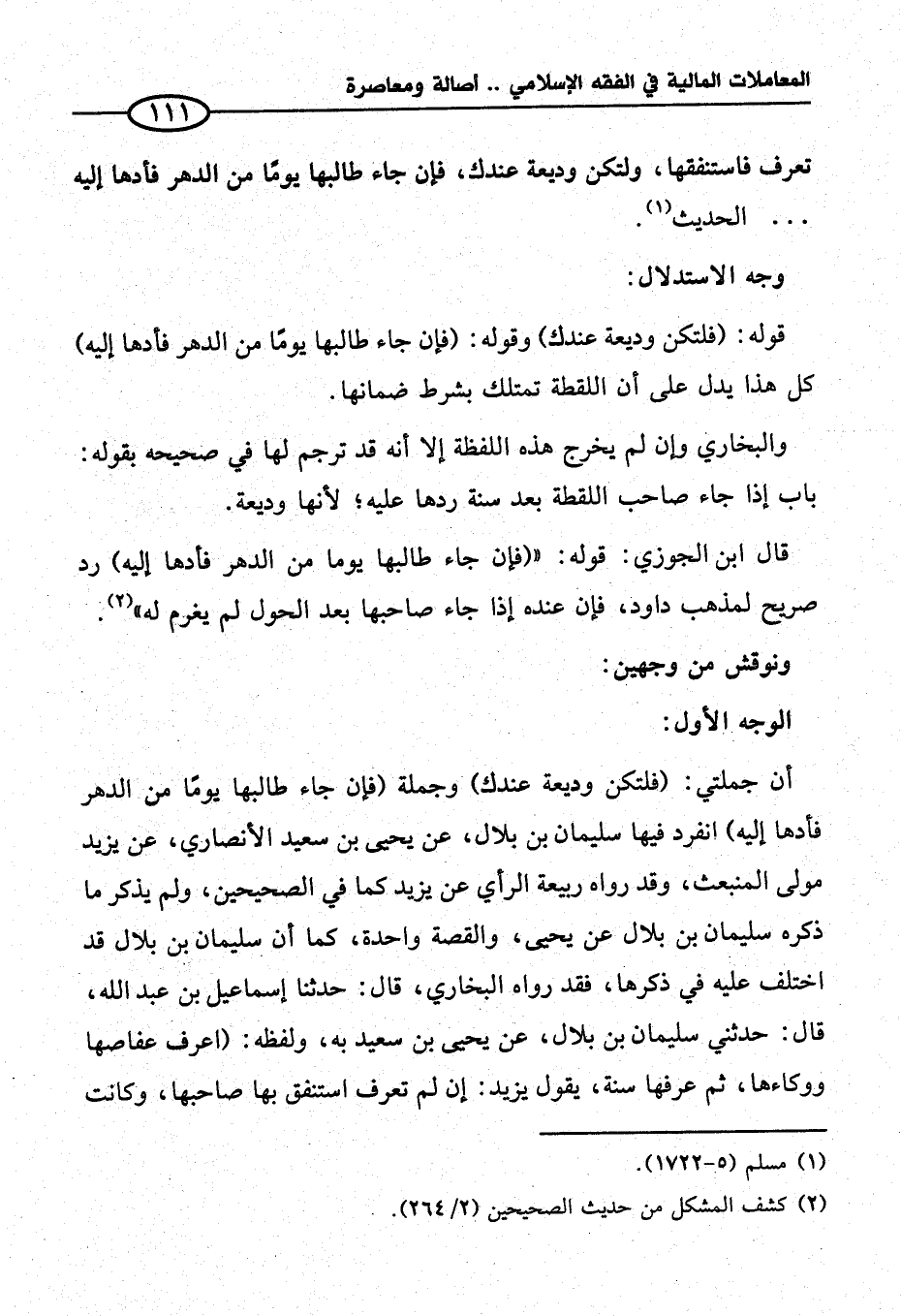 أن جملتي: (فلتكن وديعة عندك) وجملة (فإن جاء طالبها يومًا من الدهر فأدها إليه) انفرد فيها سليمان بن بلال، عن يحيى بن سعيد الأنصاري، عن يزيد مولى المنبعث، وقد رواه ربيعة الرأي عن يزيد كما في الصحيحين، ولم يذكر ما ذكره سليمان بن بلال عن يحيى، والقصة واحدة، كما أن سليمان بن بلال قد اختلف عليه في ذكرها، فقد رواه البخاري، قال: حدثنا إسماعيل بن عبد الله، قال: حدثني سليمان بن بلال، عن يحيى بن سعيد به، ولفظه: (اعرف عفاصها ووكاءها، ثم عرفها سنة، يقول يزيد: إن لم تعرف استنفق بها صاحبها، وكانت