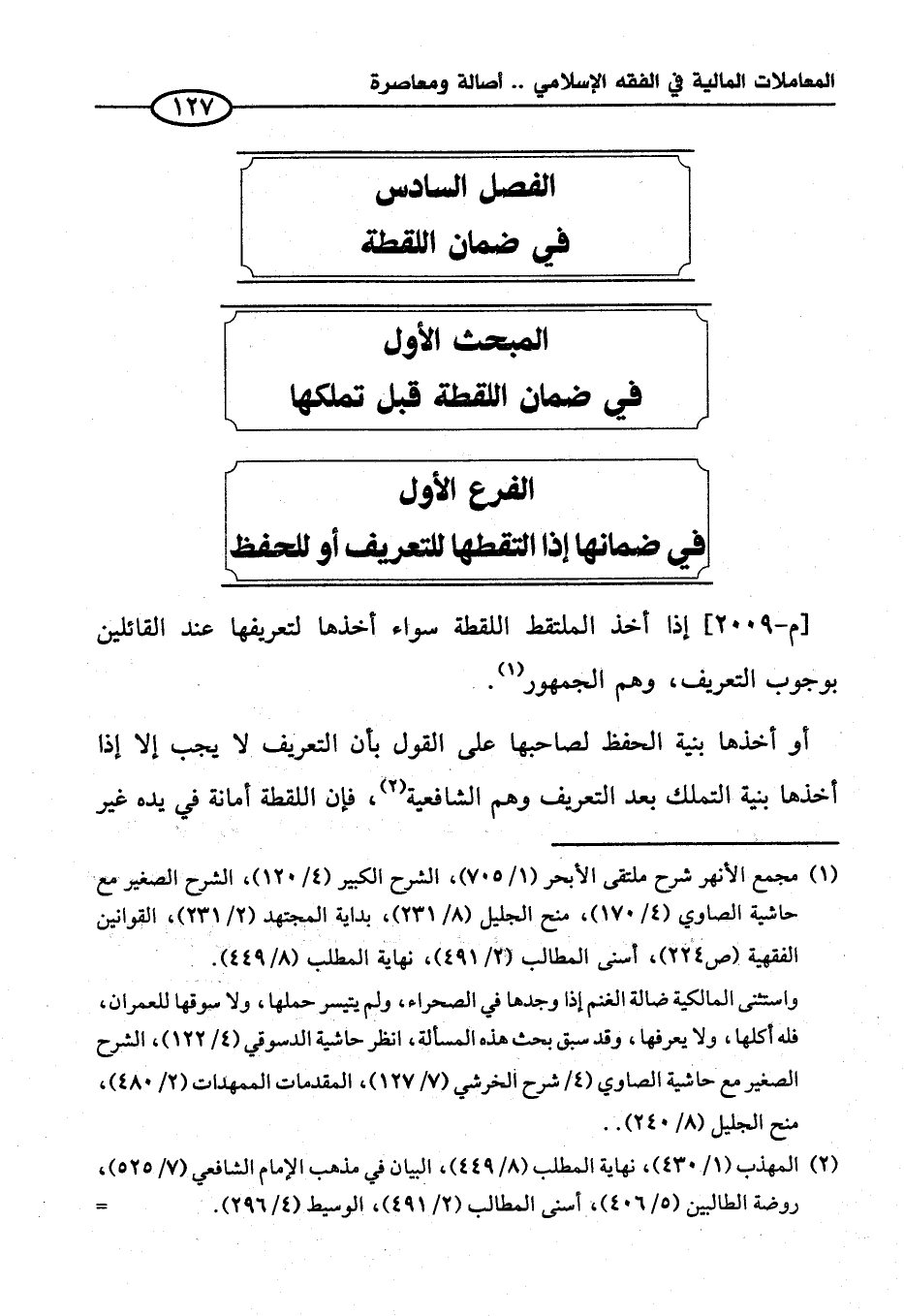 الفصل السادس في ضمان اللقطة