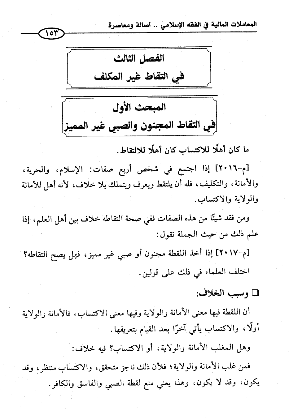 الفصل الثالث في التقاط غير المكلف