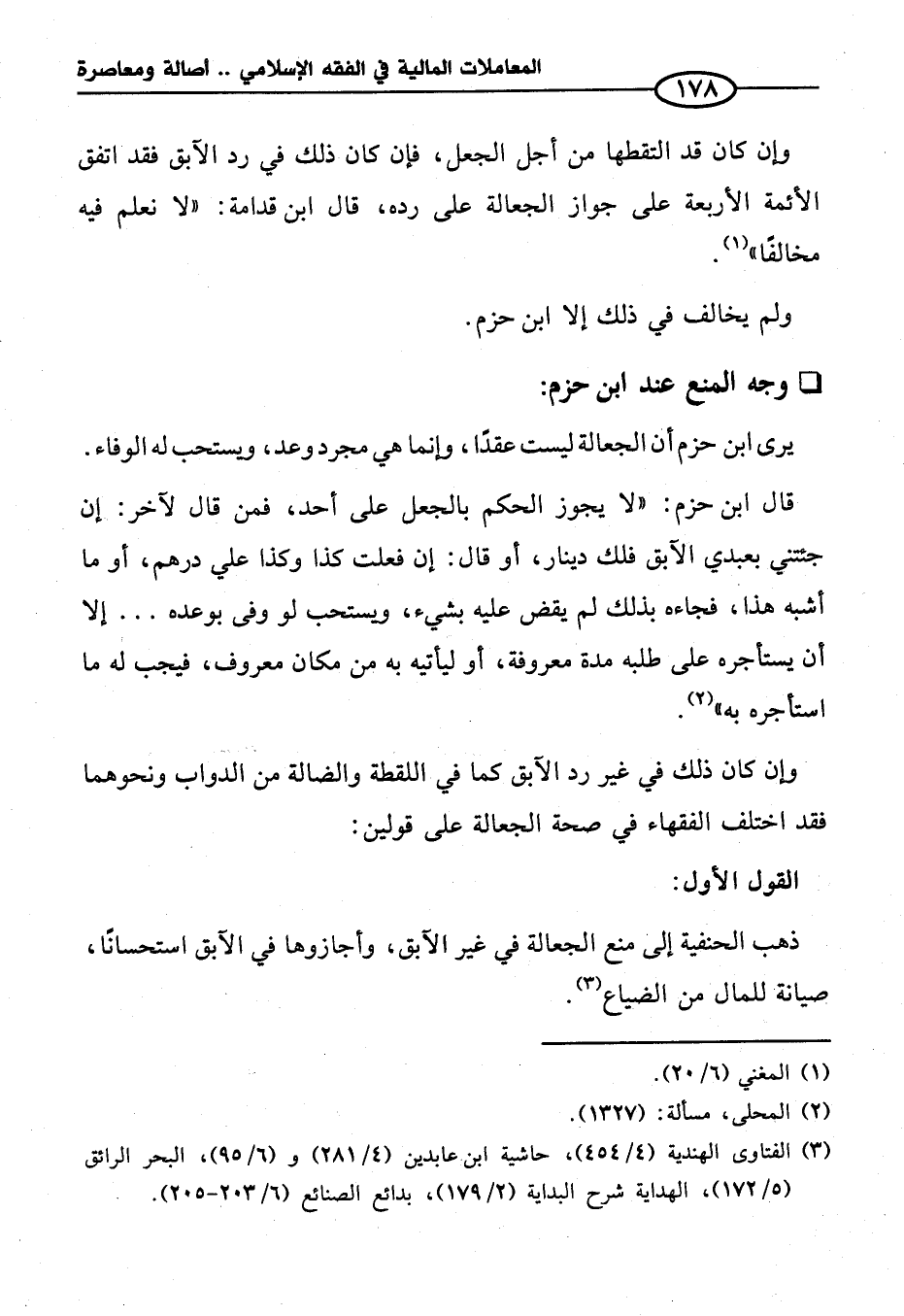 قال ابن حزم: "لا يجوز الحكم بالجعل على أحد، فمن قال لآخر: إن جئتني بعبدي الآبق ذلك دينار، أو قال: إن فعلت كذا وكذا علي درهم، أو ما أشبه هذا، فجاءه بذلك لم يقض عليه بشيء، ويستحب لو وفى بوعده ... إلا أن يستأجره على طلبه مدة معروفة، أو ليأتيه به من مكان معروف، فيجب له ما استأجره به" (¬٢).