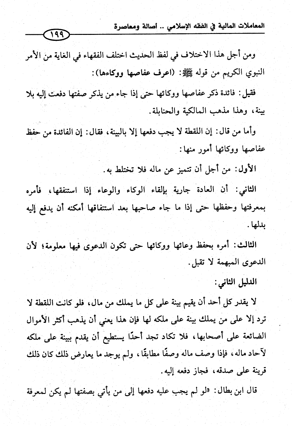 قال ابن بطال: "لو لم يجب عليه دفعها إلى من يأتي بصفتها لم يكن لمعرفة