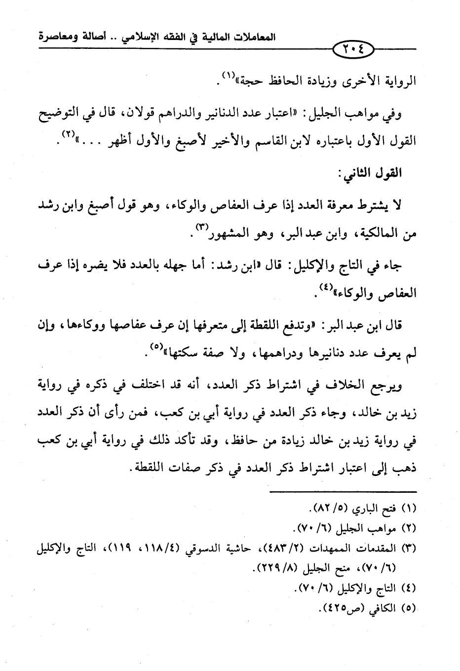 جاء في التاج والإكليل: قال "ابن رشد: أما جهله بالعدد فلا يضره إذا عرف العفاص والوكاء" (¬٤).