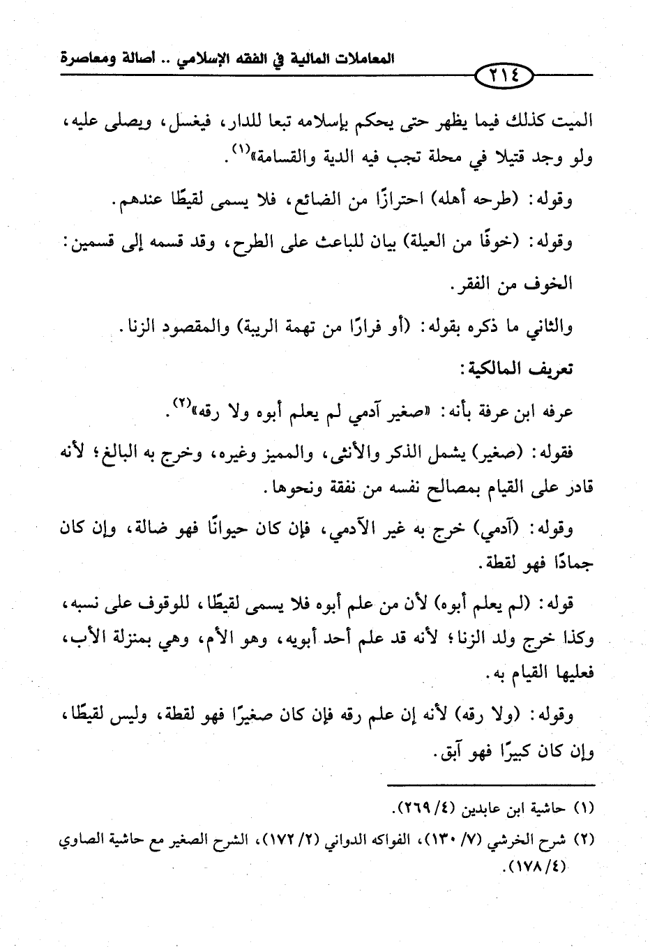 (¬٢) شرح الخرشي (٧/ ١٣٠)، الفواكه الدواني (٢/ ١٧٢)، الشرح الصغير مع حاشية الصاوي (٤/ ١٧٨).
