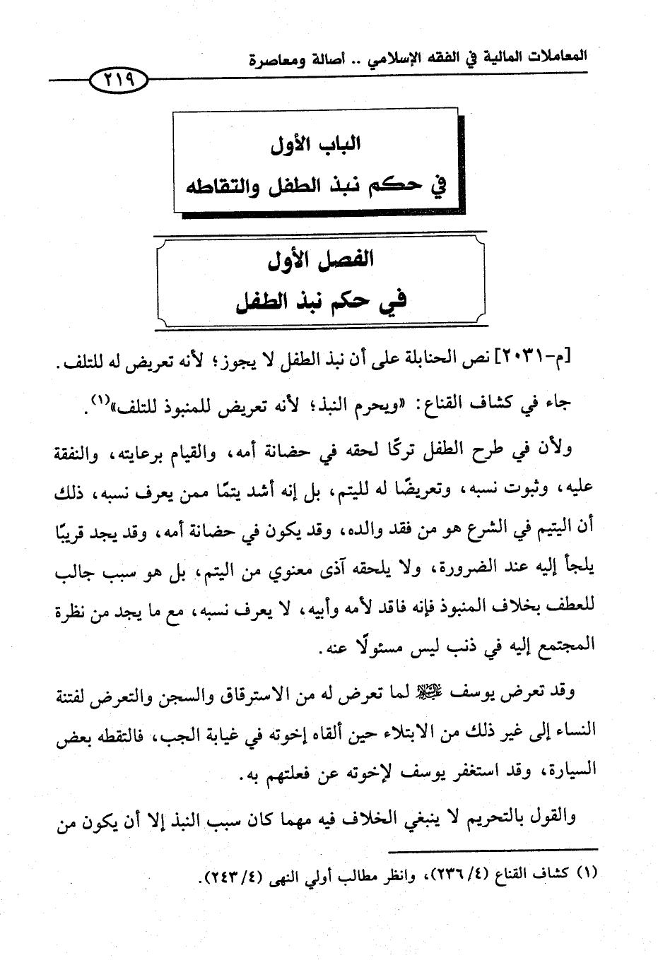 الباب الأول في حكم نبذ الطفل والتقاطه