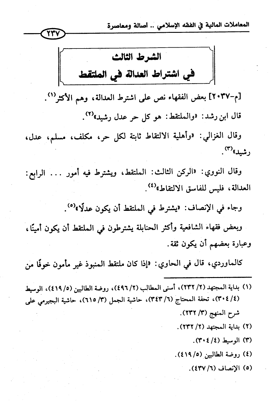 الشرط الثالث في اشتراط العدالة في الملتقط