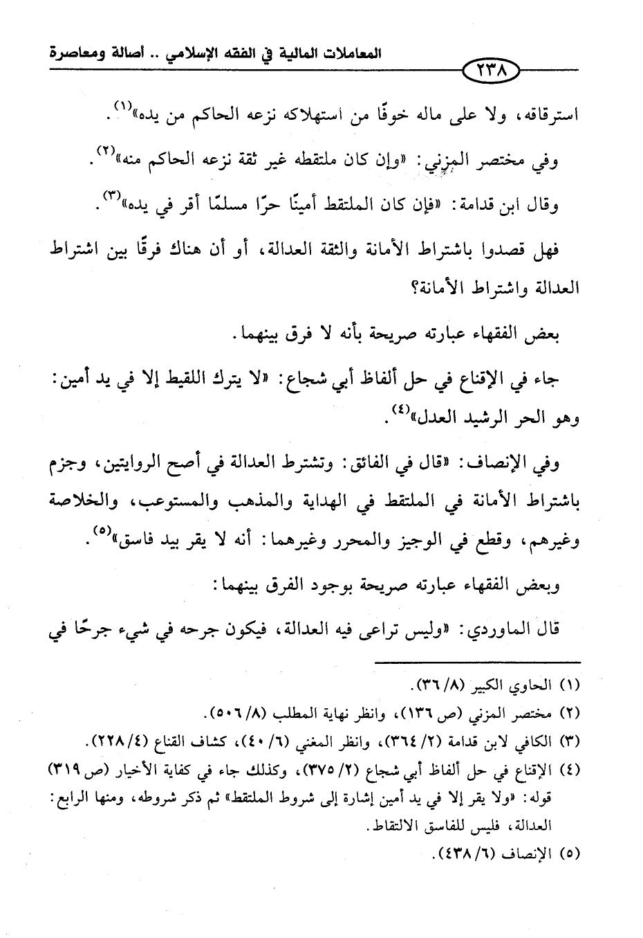 (¬٤) الإقناع في حل ألفاظ أبي شجاع (٢/ ٣٧٥)، وكذلك جاء في كفاية الأخيار (ص ٣١٩) قوله: "ولا يقر إلا في يد أمين إشارة إلى شروط الملتقط" ثم ذكر شروطه، ومنها الرابع: العدالة، فليس للفاسق الالتقاط.