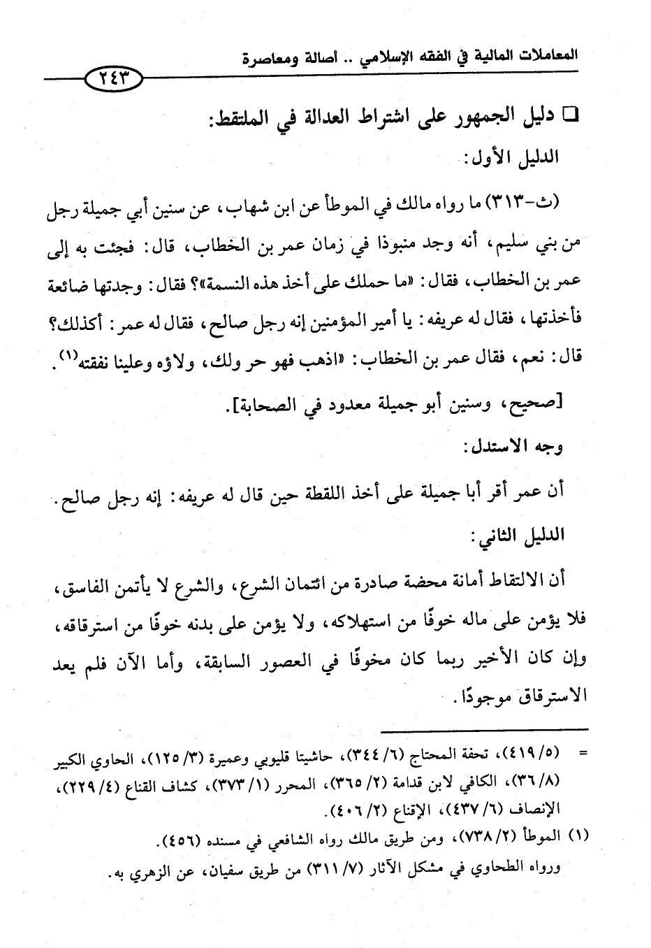(ث-٣١٣) ما رواه مالك في الموطأ عن ابن شهاب، عن سنين أبي جميلة رجل من بني سليم، أنه وجد منبوذا في زمان عمر بن الخطاب، قال: فجئت به إلى عمر بن الخطاب، فقال: "ما حملك على أخذ هذه النسمة"؟ فقال: وجدتها ضائعة فأخذتها، فقال له عريفه: يا أمير المؤمنين إنه رجل صالح، فقال له عمر: أكذلك؟ قال: نعم، فقال عمر بن الخطاب: "اذهب فهو حر ولك، ولاؤه وعلينا نفقته (¬١).