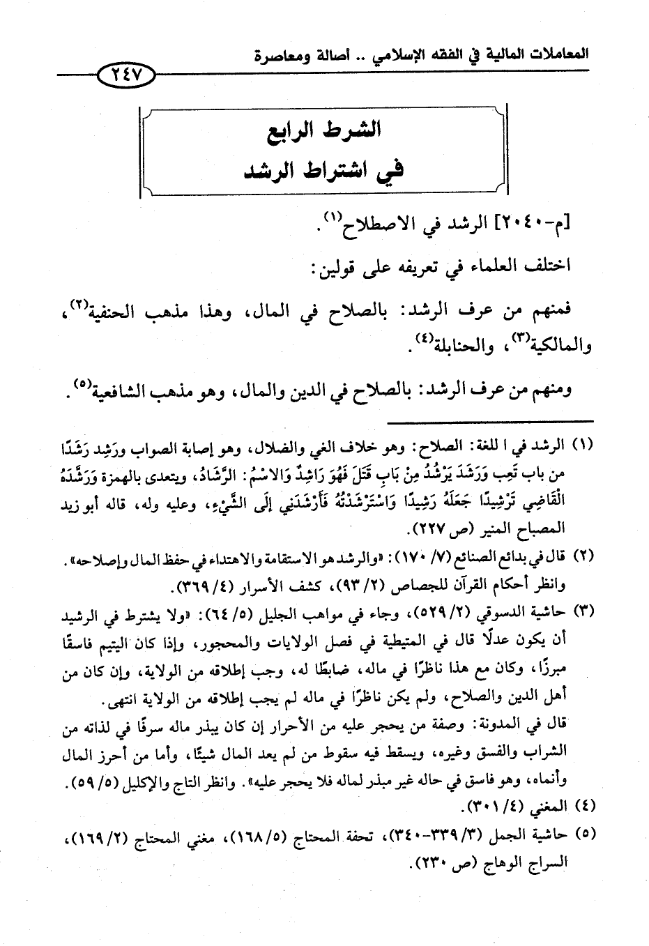 ومنهم من عرف الرشد: بالصلاح في الدين والمال، وهو مذهب الشافعية (¬٥).