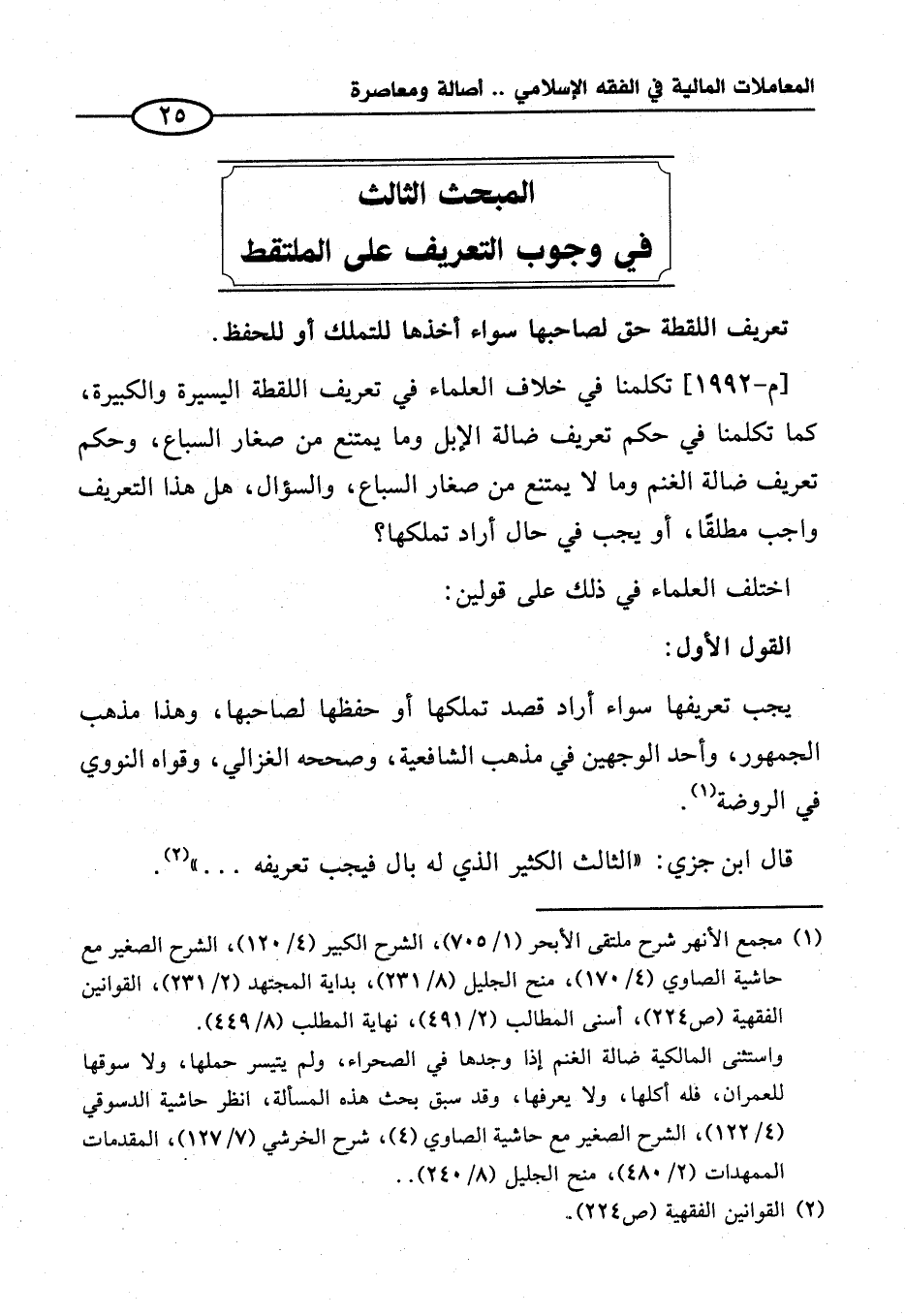 المبحث الثالث في وجوب التعريف على الملتقط