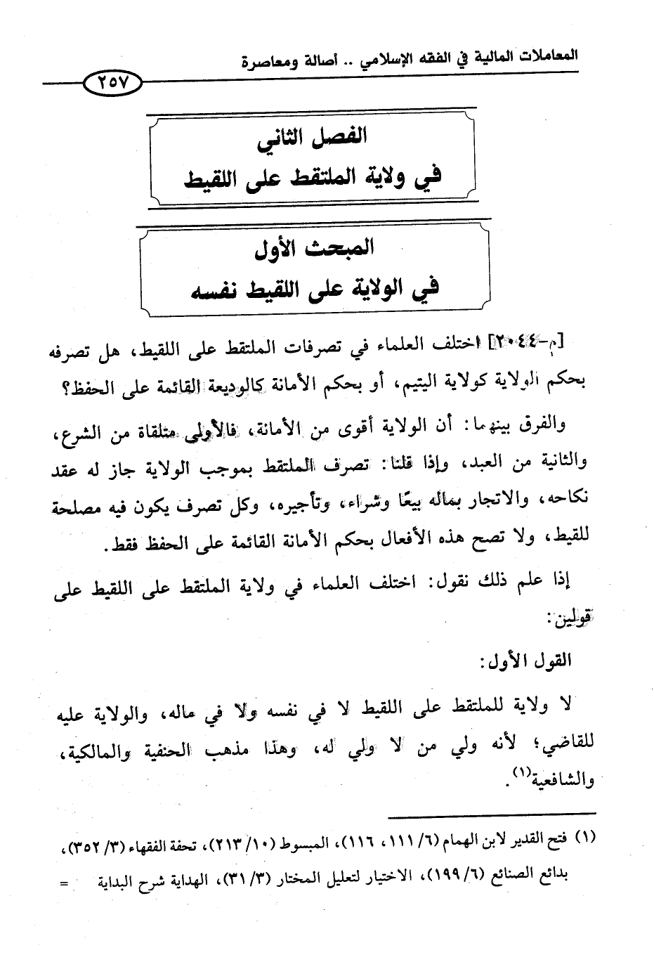 الفصل الثاني في ولاية الملتقط على اللقيط