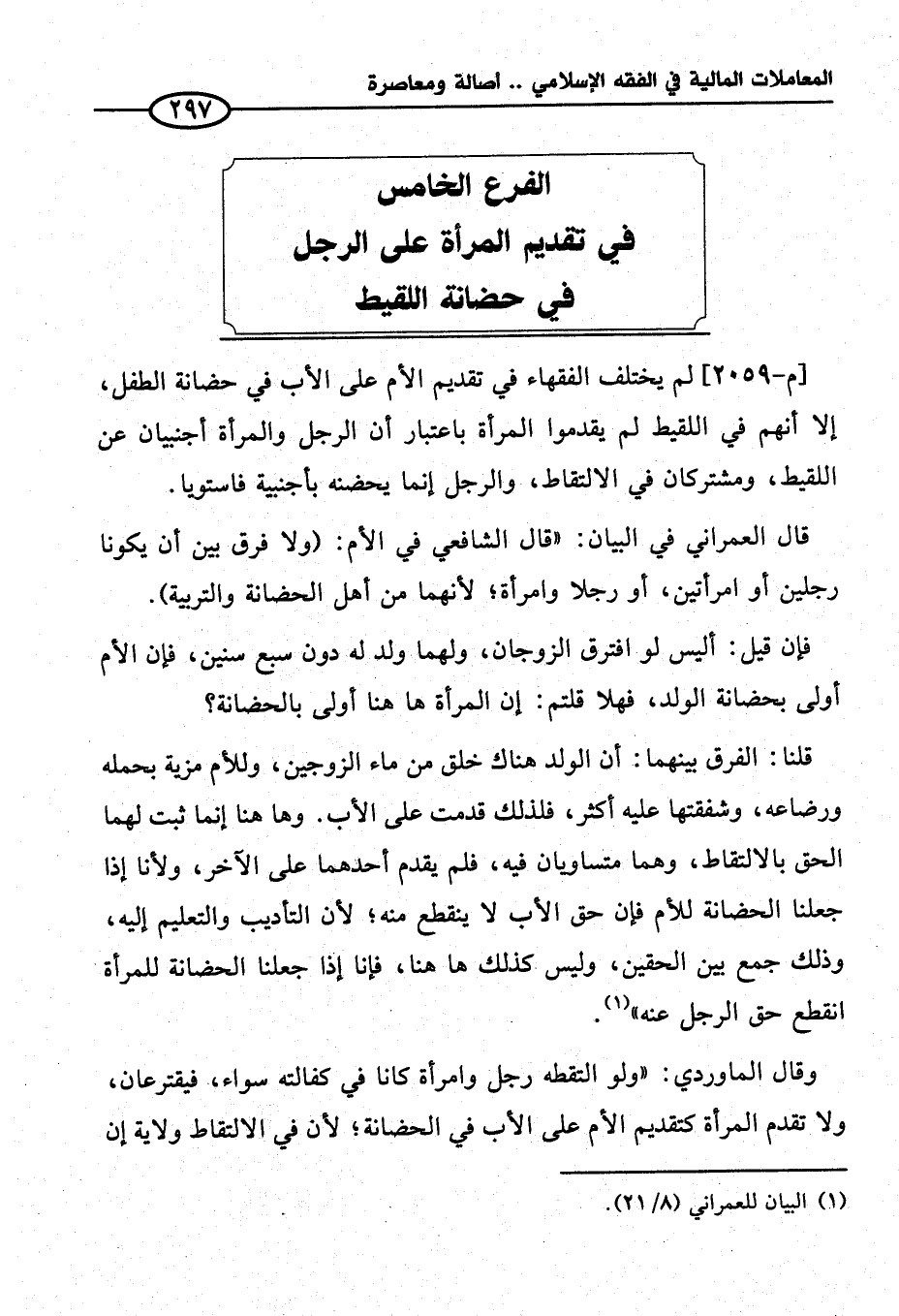 الفرع الخامس في تقديم المرأة على الرجل في حضانة اللقيط