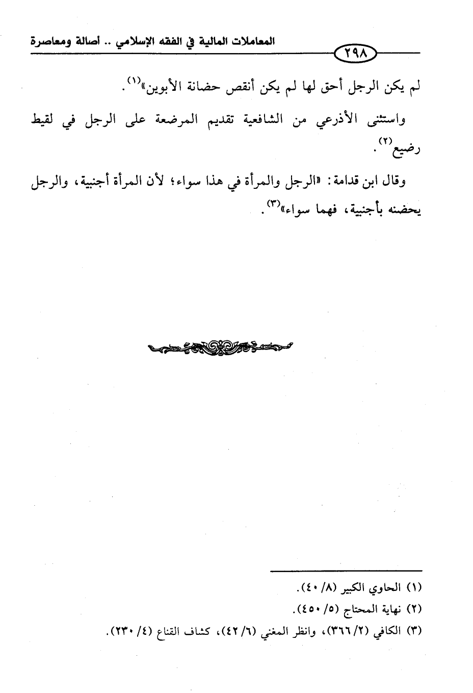 وقال ابن قدامة: "الرجل والمرأة في هذا سواء؛ لأن المرأة أجنبية، والرجل يحضنه بأجنبية، فهما سواء" (¬٣).