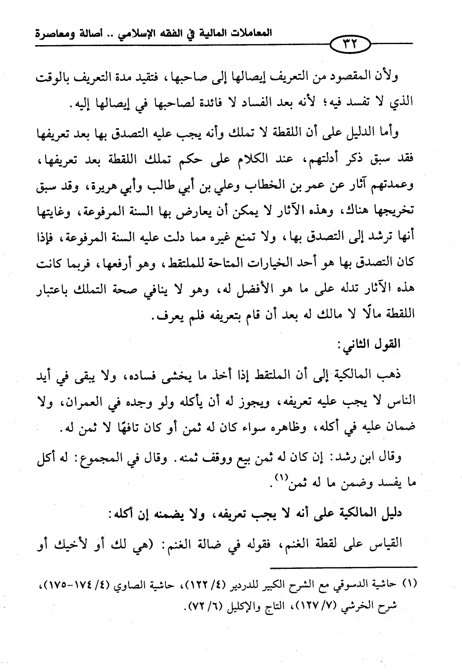 (¬١) حاشية الدسوقي مع الشرح الكبير للدردير (٤/ ١٢٢)، حاشية الصاوي (٤/ ١٧٤ - ١٧٥)، شرح الخرشي (٧/ ١٢٧)، التاج والإكليل (٦/ ٧٢).