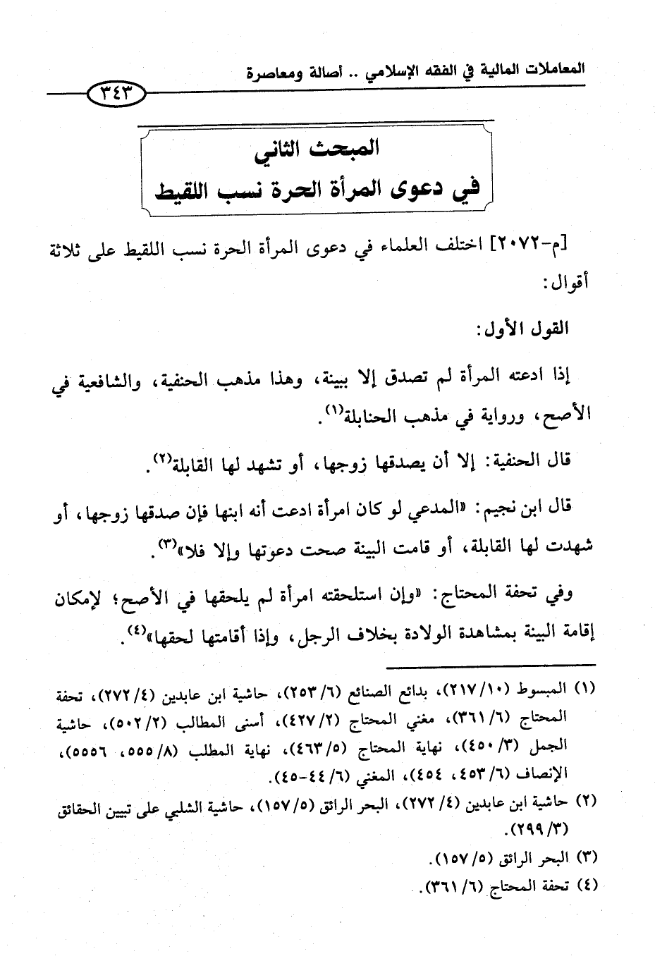 المبحث الثاني في دعوى المرأة الحرة نسب اللقيط
